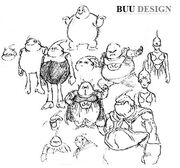 Some initial sketches of both Majin Buu and Evil Buu (Daizenshuu 4)